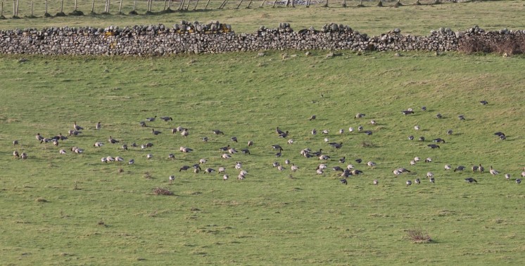 Wintering wildfowl were to the fore including: four White-fronted Geese in Feorline on 9th, three hundred Greylag Geese in the Shiskine Valley on 11th, one hundred Wigeon in Torbeg on 12th, a family of Whooper Swan, two adults with three young, in Shiskine Valley on 15th, seventy-six Canada Geese in Clachaig on 26th , thirty-four Teal on Sliddery Shore on 28th and a male Goldeneye at Port na Lochan from 3rd to 11th.