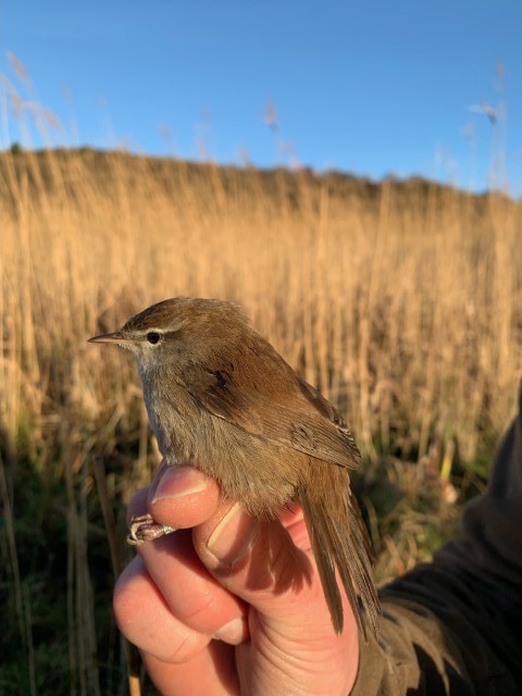 The ringers were familiar with the species through work in England, Israel, and Spain. This is an extract from their account of that morning. “Mist nets had been routinely put up to see what birds were around. A small dark brown bird disappeared into the undergrowth, and as it did so it seemed to fan its tail. I thought to myself that didn’t half look like a Cetti’s Warbler. I also recognised the call. Approximately forty minutes later we heard the bird call again and soon after this it turned up in one of the nets.” A fantastic end to birding on Arran in 2025.